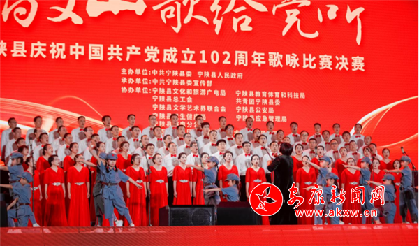 為慶祝中國(guó)共產(chǎn)黨成立102周年,6月29日晚,寧陜縣在縣城體育場(chǎng)隆重舉行“唱支山歌給黨聽”慶祝中國(guó)共產(chǎn)黨成立102周年歌詠比賽決賽,用嘹亮的歌聲回顧黨的奮斗光輝歷程,展望偉大復(fù)興光明前景。