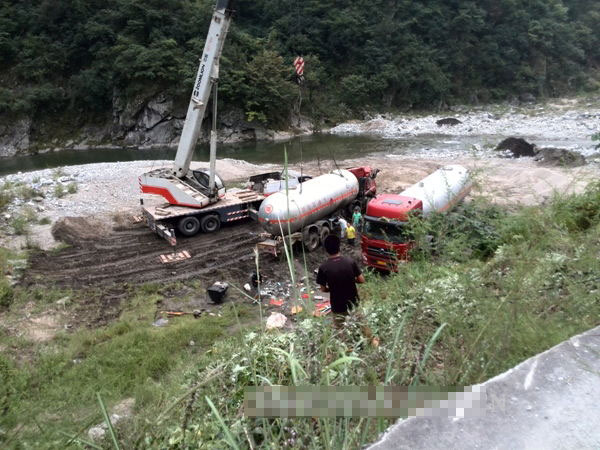 8月27日,一輛液化氣重型罐車由西安駛往安康,途徑210國道寧陜縣江口鎮(zhèn)內(nèi)時,由于雨天路滑在一急轉(zhuǎn)彎處發(fā)生意外,車翻滾入路外的河灘里,車輛受損乘員嚴(yán)重受傷,……