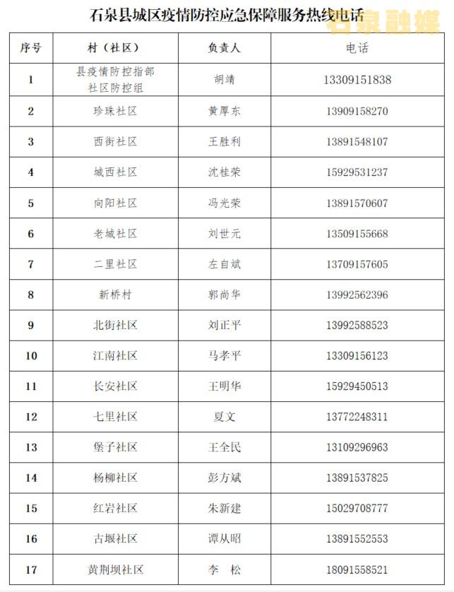 石泉縣城區(qū)疫情防控應(yīng)急保障服務(wù)熱線電話