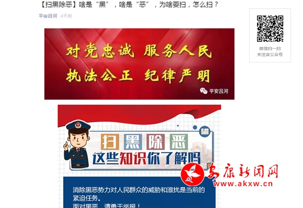 群眾“分段式”宣傳。根據(jù)轄區(qū)群眾各年齡段情況采取讓該年齡段人群容易接受的宣傳方式。對于年齡在20歲至45歲之間的年輕群體,依托各村警務(wù)群、“平安呂河”微信公眾平臺和“呂河警務(wù)聯(lián)動平臺”微信朋友圈等新媒體不斷推送“掃黑除惡”專項斗爭法律知識。對于年齡在45歲以上的人群,專門開通了短信平臺,實(shí)行“點(diǎn)對點(diǎn)”宣傳,形成了宣傳“全覆蓋”。