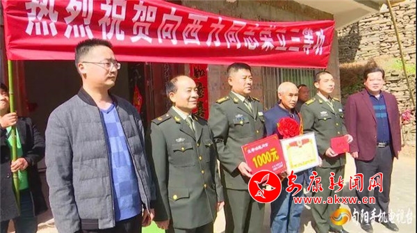喜慶的鑼鼓聲中,旬陽縣退役軍人事務(wù)局為白柳鎮(zhèn)西溝河村向明剛佩戴大紅花,并送去了喜報(bào)、慰問金以及親切的問候。向明剛的兒子向西力2013年從遼寧大學(xué)入伍,服役于武警四川總隊(duì)某中隊(duì),在參加武警四川總隊(duì)比武獲得個(gè)人第一名,并授予三等功。
