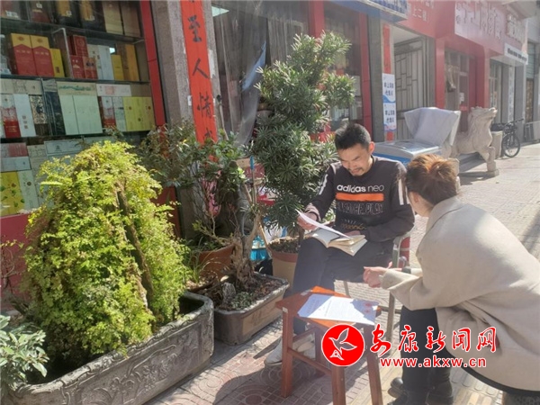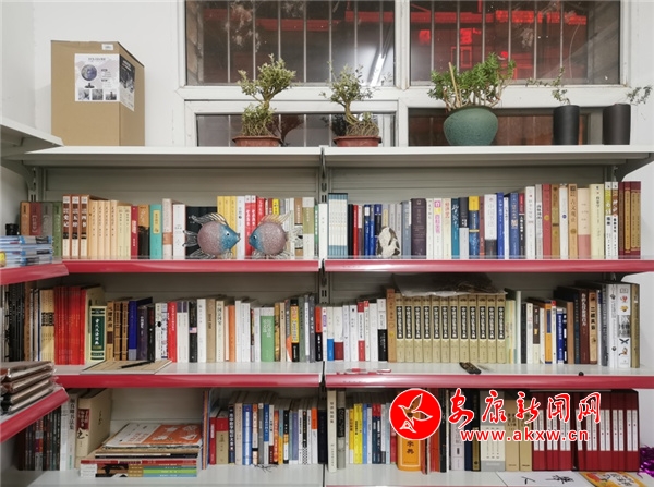 閱讀也是沈古頂?shù)囊淮髳酆谩K3W谑浙y臺(tái)旁一邊收錢,一邊閱讀。生意忙碌起來了,看書的節(jié)奏就無奈地被打斷。“讀書使人明智,我喜歡閱讀帶給我安靜舒適的感覺,鬧中取靜也是一種快樂。”沈古頂說道。
