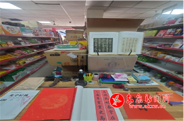 走進(jìn)店里,除了琳瑯滿目的商品外,貨架旁還放置了一張桌子,那是沈古頂日常練習(xí)書法的地方。他每天都會(huì)抽出兩到三小時(shí)練字,從不落下一天。常有老顧客向他求墨寶,他總是欣然答應(yīng),為顧客認(rèn)真寫好每幅字。近年,縣煙草公司在商戶中成立了誠信經(jīng)營互助組織,沈古頂?shù)?ldquo;字謎”隊(duì)伍更加壯大了。他不但用書法為自己筑就了一方桃花源,也在大家之間架起了一座促進(jìn)交流、建立友誼的連心橋。