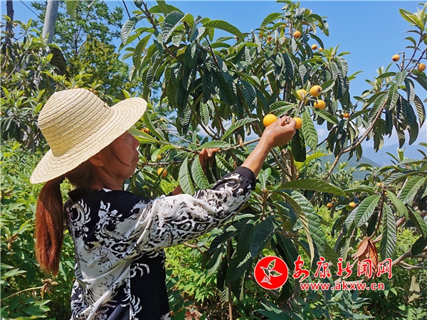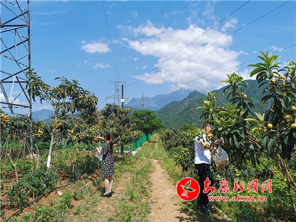 果農(nóng)們正忙著采摘、包裝、發(fā)運(yùn),臉上寫滿了豐收的喜悅。果農(nóng)楊作芳正在地里采摘枇杷,只見她左手挎著果籃,右手抓住枝丫,熟練地將一顆顆枇杷摘下來,看到品相特別好的,她就拿起來展示一下,“你看這幾顆又大又圓,熟透了,絕對(duì)特別甜。”她從2016年開始流轉(zhuǎn)自己的土地給合作社種植枇杷,總共種了16畝。“今年的枇杷剛剛成熟,掛果比去年還多。我摘一天給我發(fā)100元工資,枇杷一斤可以賣到10塊錢,等枇杷都賣了,我能穩(wěn)穩(wěn)賺到4萬多呢。”剛從地里采摘完枇杷正在裝箱的楊作芳談及枇杷給她帶來的收益樂開了花。在枇杷園內(nèi)除了果農(nóng)外,也引得不少游人前來觀光采摘。