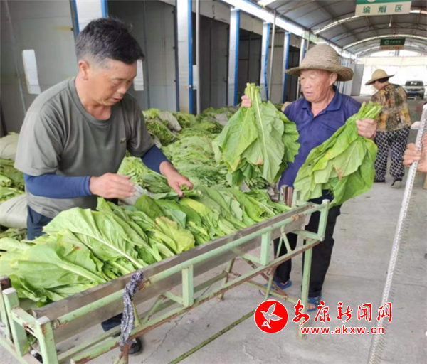 隨著臺子村千畝烤煙基地第一爐烤煙裝進(jìn)烤煙房,標(biāo)志著神河鎮(zhèn)3200畝烤煙將陸續(xù)進(jìn)入“開烤”黃金期,在煙葉大田里,隨處可見煙農(nóng)們采葉、運(yùn)輸?shù)姆泵跋,煙農(nóng)將新采摘的煙葉,分揀編織,送入烤煙房,一片片綠葉在高溫的環(huán)繞下,蓄勢變?yōu)闊熮r(nóng)增收的“黃金葉”。