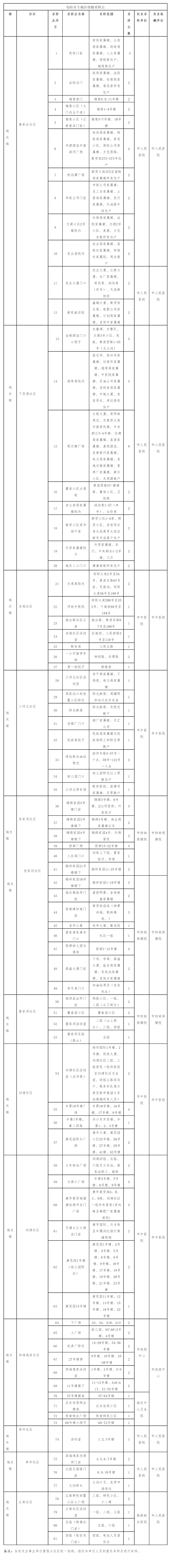 4.各機(jī)關(guān)企事業(yè)單位要服從社區(qū)統(tǒng)一安排,組織本單位人員到就近采樣點(diǎn)進(jìn)行采樣。