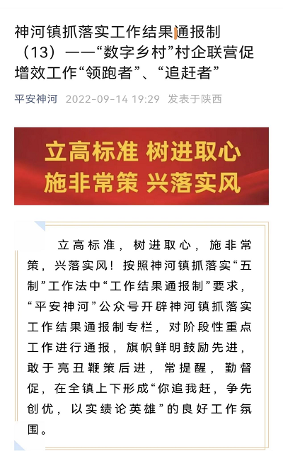 一套管理制度,持續(xù)鞏固深化作風建設(shè)。為了持續(xù)鞏固深化作風建設(shè),鎮(zhèn)黨委政府在實行干部管理日簽到制、去向登記制、周例會制等管理制度的基礎(chǔ)上,堅持立高標準,樹進取心、施非常策,興落實風,制定出臺了“工作安排清單制、工作內(nèi)容量化制、工作進度限時制、工作成果通報制、工作成效獎懲制”的“五制”工作法,圍繞“經(jīng)濟穩(wěn)增長、項目建設(shè)、招商引資、營商環(huán)境、鄉(xiāng)村振興、疫情防控、防汛防滑、民生保障、安全生產(chǎn)、信訪維穩(wěn)、環(huán)境衛(wèi)生綜合整治”等重點工作推進落實情況,在“平安神河”公眾號開辟神河鎮(zhèn)抓落實工作結(jié)果通報制專欄,對階段性重點工作進行通報,旗幟鮮明鼓勵先進,敢于亮丑鞭策后進,常提醒,勤督促,在全鎮(zhèn)上下形成“你追我趕,爭先創(chuàng)優(yōu),以實績論英雄”的良好工作氛圍。作風建設(shè)開展以來,通過五制工作法在“平安神河”公眾號進行抓落實工作結(jié)果通報13期,收到良好效果。下一步將作風建設(shè)與“五制工作法”有機結(jié)合,堅持常抓長效、常管常嚴,深化作風建設(shè)落地見效,以過硬的作風抓黨風促政風帶民風樹新風,促進鎮(zhèn)域經(jīng)濟社會高質(zhì)量發(fā)展,喜迎黨的二十大勝利召開。