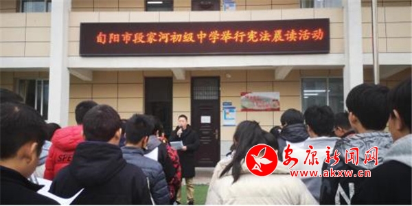 學(xué)校里,開展憲法晨讀,全體師生共同參與,同步跟讀憲法條款,讓學(xué)生通過學(xué)習(xí)憲法的基本原則和基本知識,感受憲法精神,體悟憲法威嚴(yán),在校內(nèi)形成“積極宣傳憲法、尊崇憲法、維護憲法,弘揚憲法精神,樹立憲法權(quán)威,增強法治觀念”的新風(fēng)尚。