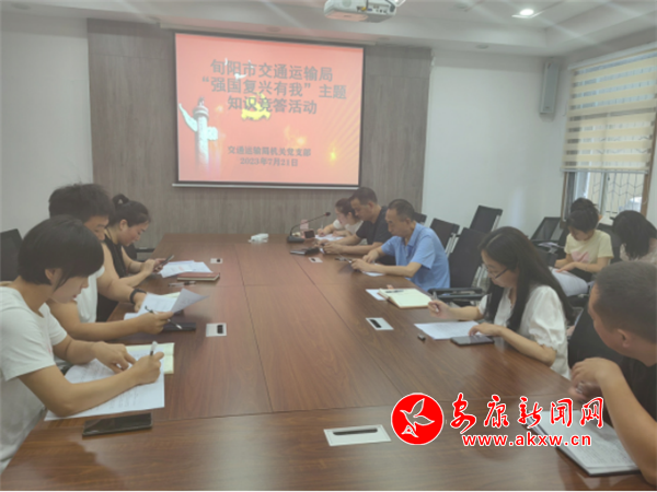 本網(wǎng)訊 為深入學(xué)習(xí)貫徹黨的二十大精神,深化“強(qiáng)國復(fù)興有我”群眾性主題宣傳教育活動(dòng),進(jìn)一步激發(fā)系統(tǒng)黨員群眾愛黨、愛國熱情,教育引導(dǎo)黨員群眾堅(jiān)定理想信念,凝聚奮進(jìn)力量,筑牢初心使命;激發(fā)黨員群眾干事創(chuàng)業(yè)激情,牢固樹立高質(zhì)量項(xiàng)目建設(shè)和高品質(zhì)運(yùn)輸服務(wù)“雙高”理念。近日,旬陽市交通運(yùn)輸局結(jié)合主題黨日活動(dòng),突擊組織機(jī)關(guān)30余名黨員干部開展“強(qiáng)國復(fù)興有我”主題宣傳教育知識(shí)競答活動(dòng)。