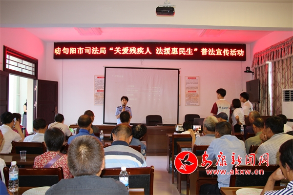 8月13日早上,在旬陽市甘溪鎮(zhèn)甘溪社區(qū)活動室里,旬陽市司法局、市婦聯(lián)、市殘聯(lián)工作人員以“嘮家常”的方式你一言我一語地向臺下的群眾宣講著惠殘政策、助殘法律法規(guī)等知識。不同以往,本次宣講借助市殘聯(lián)舉辦的殘疾人技能培訓(xùn)契機,專門針對殘疾人朋友送上了“法治大餐”。