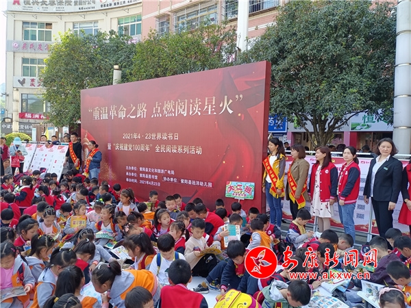 紫陽縣文旅廣電局、縣圖書館、新華書店紫陽分公司舉行“重溫革命之路·點(diǎn)燃閱讀星火”慶祝建黨100周年閱讀推廣活動,200余名幼兒參加了閱讀分享活動,并提供200余本黨史主題圖書和50本電子圖書供市民免費(fèi)閱讀。