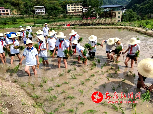 本網(wǎng)訊(通訊員 牟楓 劉成軍)6月7日,紫陽縣高橋鎮(zhèn)中心小學(xué)392名學(xué)生在老師的帶領(lǐng)下,伴隨著初夏氣息,嗅著撲鼻的泥土芳香,整齊有序地來到該縣夢紫陽中小學(xué)勞動實(shí)踐基地,開展“知農(nóng)事,學(xué)農(nóng)耕,惜農(nóng)食”插秧勞動實(shí)踐活動。