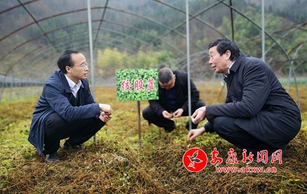 魯琦先后深入平利縣老縣鎮(zhèn)、城關(guān)鎮(zhèn)和廣佛鎮(zhèn),了解北醫(yī)大絞股藍(lán)基地、興強(qiáng)富硒茶葉(絞股藍(lán))公司、秦漢古茶、東山寨魔芋產(chǎn)業(yè)發(fā)展情況。在北醫(yī)大絞股藍(lán)種源基地,魯琦在田間地頭同有關(guān)方面負(fù)責(zé)人一起憶歷程、談現(xiàn)狀、話未來(lái),他指出,要認(rèn)真總結(jié)平利絞股藍(lán)產(chǎn)業(yè)的發(fā)展經(jīng)驗(yàn),切實(shí)針對(duì)市場(chǎng)需求,有效挖掘“中國(guó)絞股藍(lán)原產(chǎn)地”“絞股藍(lán)之父”“中國(guó)馳名商標(biāo)”品牌效益,積極爭(zhēng)取絞股藍(lán)“食藥同源”盡快獲批,不斷加大產(chǎn)品研發(fā)、種源培育、規(guī);N植力度,拓寬營(yíng)銷渠道,全力唱響“全國(guó)富硒絞股藍(lán)生產(chǎn)第一縣”金字招牌。