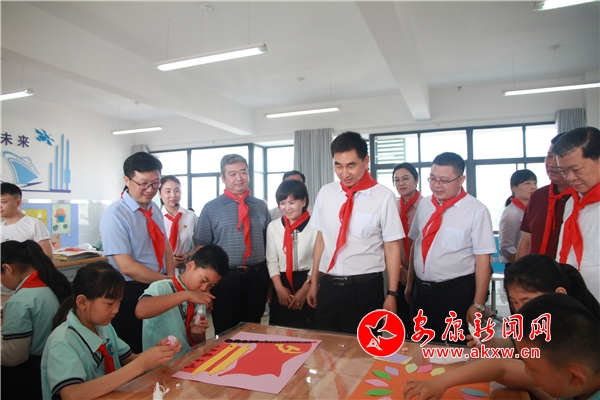 在高新一小,郭青先后走進(jìn)少先隊(duì)活動(dòng)室和手工課堂,詳細(xì)了解學(xué)校軟硬件建設(shè)、教育教學(xué)活動(dòng)開展等情況,認(rèn)真傾聽學(xué)生代表“黨建帶隊(duì)建,紅色故事我來講”發(fā)言,和同學(xué)們一道完成“戰(zhàn)斗英雄楊根思”剪紙版畫,并祝同學(xué)們節(jié)日快樂。他說,少年兒童是國家的未來和民族的希望,同學(xué)們要樹立遠(yuǎn)大理想,珍惜美好時(shí)光,勤學(xué)上進(jìn)、強(qiáng)健體魄、錘煉意志,努力做德智體美勞全面發(fā)展的新時(shí)代好少年。各級各部門和學(xué)校要更加關(guān)心關(guān)愛少年兒童,帶著感情、帶著責(zé)任抓好教育,為少年兒童茁壯成長創(chuàng)造有利條件;當(dāng)前要切實(shí)抓好常態(tài)化疫情防控,確保孩子們生命安全和身體健康。