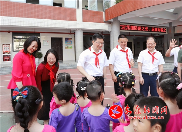 黃戈來到漢濱初中濱江校區(qū)看望慰問少年兒童,親切詢問了解孩子們學(xué)習(xí)生活情況,同大家一起做手工,共讀一本書,參加少先隊(duì)入隊(duì)儀式,為新隊(duì)員們親手系上紅領(lǐng)巾,并送上節(jié)日祝福和美好期望。寄語孩子們要牢記習(xí)近平總書記來陜考察時(shí)對大家提出的“文明其精神、野蠻其體魄”殷切囑托,努力鍛煉身體,刻苦學(xué)習(xí)知識,打好基礎(chǔ),報(bào)效祖國。叮囑有關(guān)部門要努力為少年兒童營造健康、快樂、安全的學(xué)習(xí)生活環(huán)境,讓他們茁壯成長、全面發(fā)展。