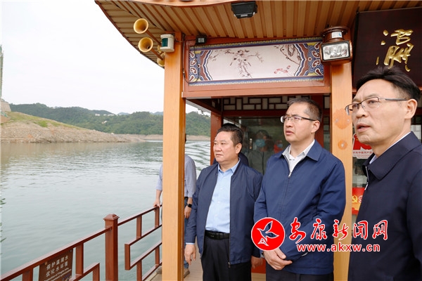 本網訊(記者 吳單)5月15日,代市長王浩在瀛湖生態(tài)旅游區(qū)檢查漢江水質保護工作,調研文旅融合發(fā)展與重點景區(qū)建設情況。副市長周康成參加調研。王浩(右二)在瀛……