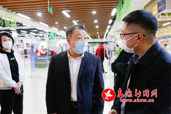 在天一城市廣場,武文罡實地查看疫情防控常態(tài)化措施落實情況,要求各類市場經(jīng)營主體必須堅決克服麻痹思想,從嚴落實重點場所“測溫、驗碼、戴口罩、一米距、常消毒”常態(tài)化疫情防控措施,全力消除各類風險隱患。同時強調(diào)各級要加強物資調(diào)運,備足生活物品,穩(wěn)定市場價格,確保滿足群眾生產(chǎn)生活需求。