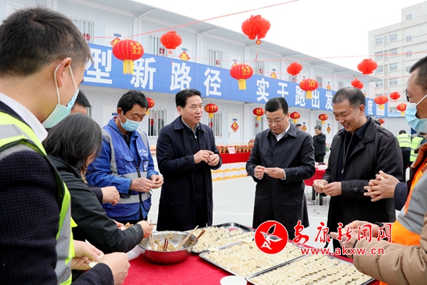 在陜建十二建高新區(qū)路網(wǎng)項(xiàng)目工地,趙俊民一行親切看望響應(yīng)號(hào)召留守安康、就地過年的施工人員,并同大家一起包餃子、吃團(tuán)年飯,共同分享迎新納福的喜悅。趙俊民勉勵(lì)大家,無論來自何方、家在何處,都是推動(dòng)發(fā)展的建設(shè)者、參與者、見證者,希望大家在安康舒心過節(jié)、安心工作。各級(jí)各部門要強(qiáng)化政策落實(shí)和保障措施,為就地過年人員提供良好的工作和生活環(huán)境,讓他們以安康為家,歡歡喜喜地過個(gè)幸福年。