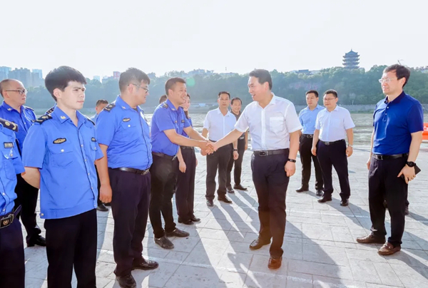 在安康龍舟文化園,趙俊民督導(dǎo)漢江禁洗工作,看望漢江中心城區(qū)段環(huán)境保護(hù)工作人員,并送去防暑降溫慰問品,叮囑他們在開展河道洗滌勸導(dǎo)活動的同時(shí),注意防暑降溫、保重身體。