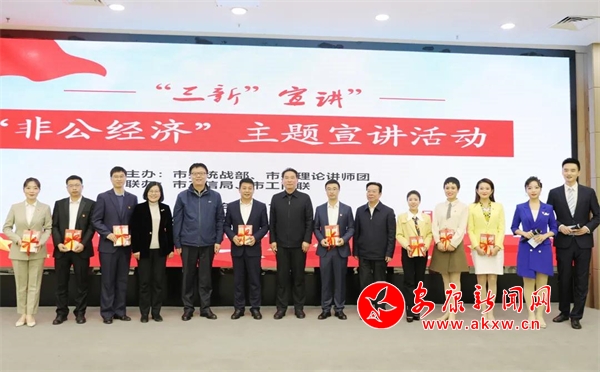 本網(wǎng)訊(記者 艾蓓)11月11日,由市委統(tǒng)戰(zhàn)部、市委講師團主辦的“三新”宣講團“非公經(jīng)濟”主題宣講活動在安康高新區(qū)舉行。市委書記趙俊民出席并講話。市委常委、統(tǒng)戰(zhàn)部部長雷西明致辭。市委常委、宣傳部部長羅雪劍,市政協(xié)副主席孟平出席活動。