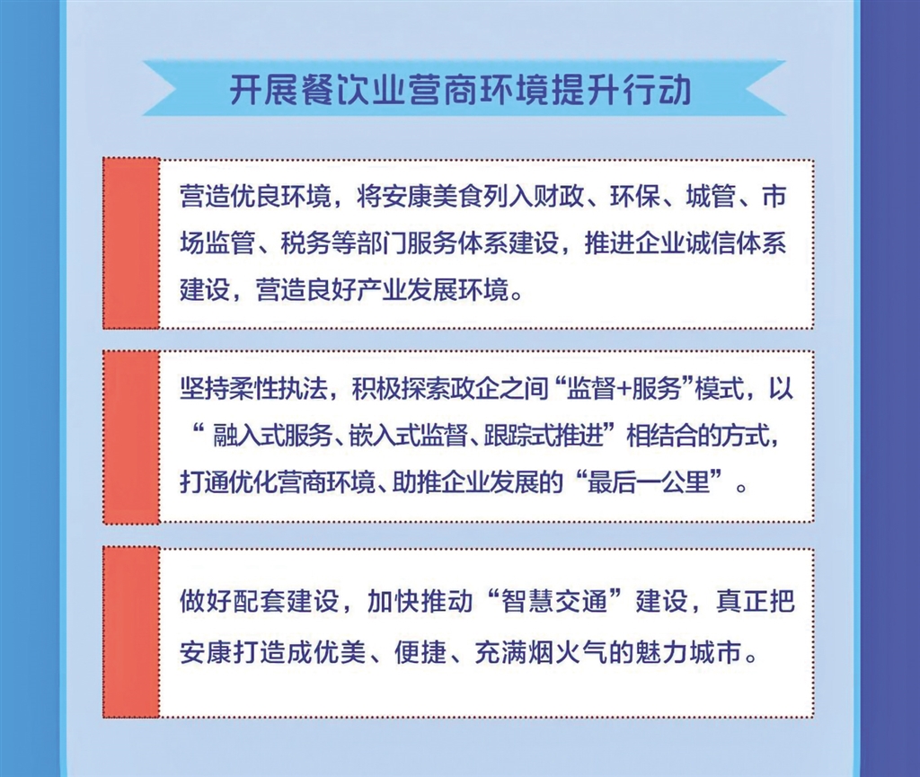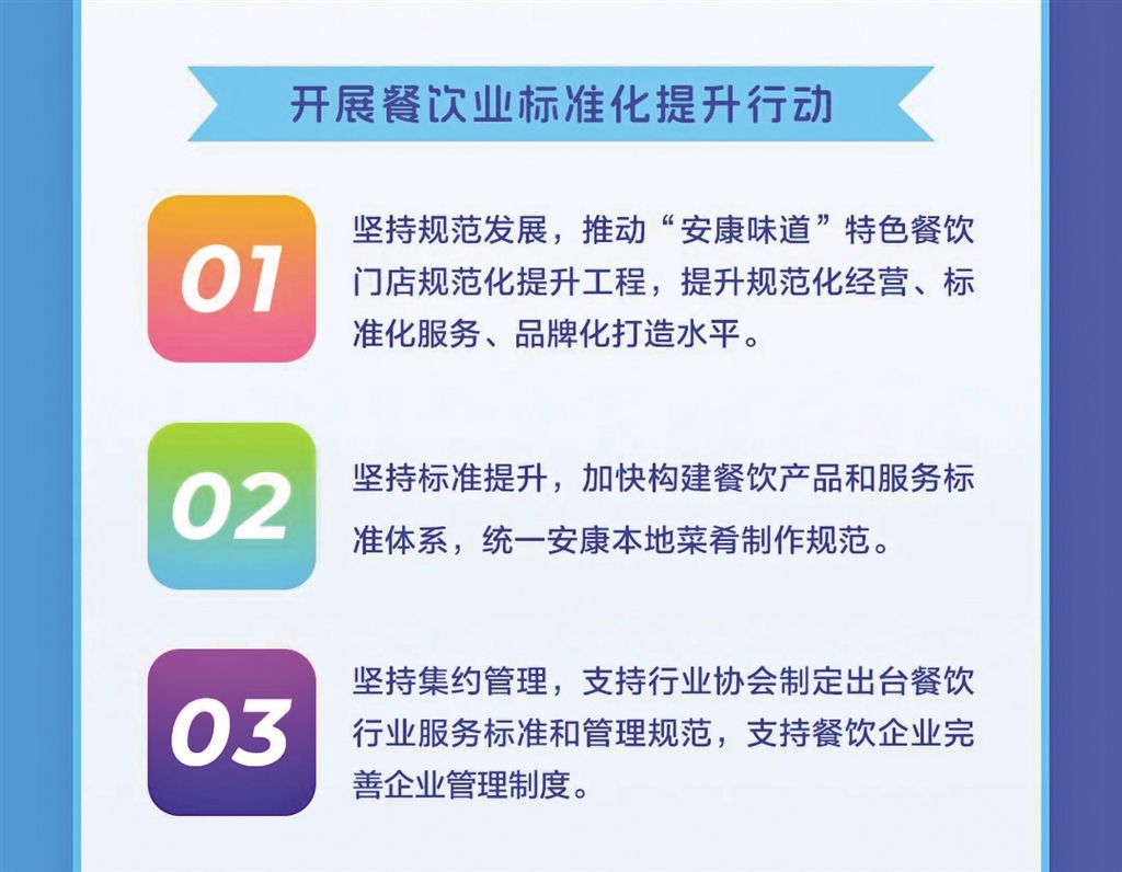日前,安康市商務(wù)局等11部門(mén)聯(lián)合發(fā)布《關(guān)于進(jìn)一步推進(jìn)全市餐飲業(yè)高質(zhì)量發(fā)展的實(shí)施意見(jiàn)》,本期帶您一圖讀懂其重點(diǎn)任務(wù)。QNg安康新聞網(wǎng)