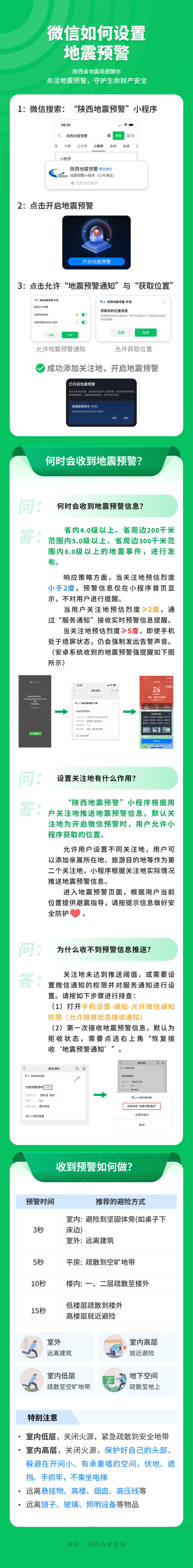 8月6日,記者從陜西省地震局獲悉:隨著國家地震預(yù)警工程的全面建成以及陜西《地震預(yù)警信息發(fā)布規(guī)范》地方標準的實施,“陜西地震預(yù)警”微信小程序已正式上線,可為用戶提供本地地震預(yù)警服務(wù)。省界范圍內(nèi),滿足陜西《地震預(yù)警信息發(fā)布規(guī)范》的地震事件發(fā)生后,該小程序?qū)⒃?0秒內(nèi)向用戶發(fā)布地震預(yù)警信息,最大并發(fā)量可達每秒200萬用戶,將有效降低地震災(zāi)害造成的人民群眾生命財產(chǎn)損失。