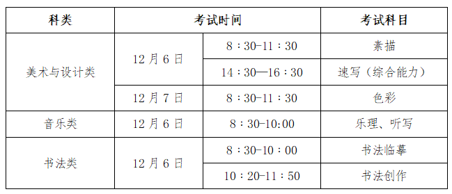 6.音樂(lè)類(lèi)聽(tīng)寫(xiě)與樂(lè)理科目正式開(kāi)考前15分鐘(8:15)后,遲到考生不得進(jìn)入考場(chǎng)。美術(shù)與設(shè)計(jì)類(lèi)各科、書(shū)法類(lèi)臨摹科目開(kāi)考15分鐘后,遲到考生不得進(jìn)入考場(chǎng)。