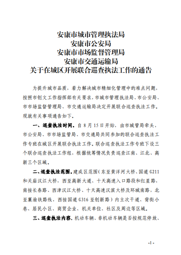 我市發(fā)布通告:在城區(qū)開展聯(lián)合巡查執(zhí)法工作