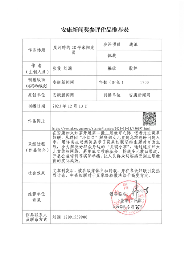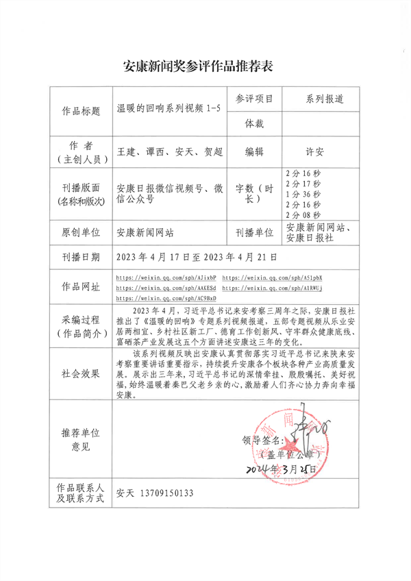 經(jīng)過(guò)編委會(huì)推薦、社黨委研究決定,擬推薦以下13件新聞作品參評(píng)2023年度“安康新聞獎(jiǎng)”。公示時(shí)間從2024年3月25日至2024年3月29日,公示期為5個(gè)工作日。如有不同意見(jiàn),請(qǐng)向安康日?qǐng)?bào)社機(jī)關(guān)紀(jì)委、新聞管理部反映。nyB安康新聞網(wǎng)