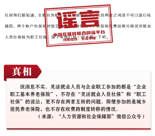 謠言1:收費(fèi)可將靈活就業(yè)人員社保轉(zhuǎn)為職工社保?