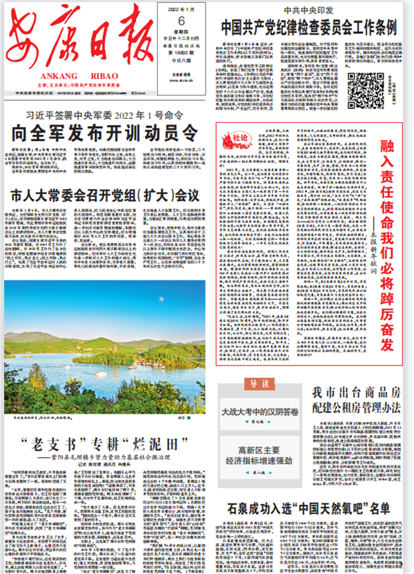 (2022年1月6日安康日?qǐng)?bào)01版“融入責(zé)任使命我們必將踔厲奮發(fā)”)