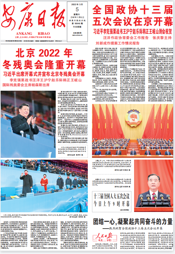 (2022年3月5日安康日?qǐng)?bào)01版“北京2022年冬殘奧會(huì)隆重開幕”、“全國(guó)政協(xié)十三屆五次會(huì)議在京開幕”)