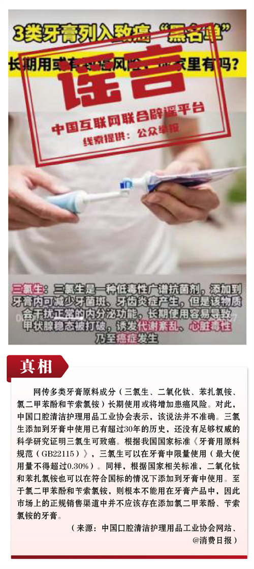 謠言8:多類牙膏原料存致癌風(fēng)險(xiǎn)?
