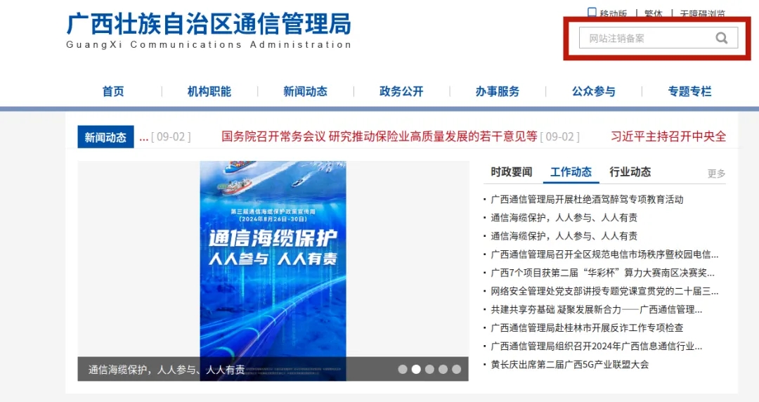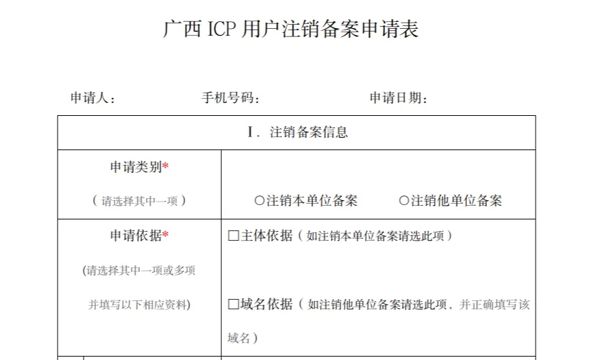備案注銷需要到備案號當(dāng)?shù)氐耐ㄐ殴芾砭窒螺d“注銷備案申請表”,按“填表須知”中的要求把申請表里的信息填好,將材料郵寄或送到指定地點即可。處理結(jié)果申請人可自行登錄工信部備案系統(tǒng)“公共查詢”可查詢。以廣西為例: