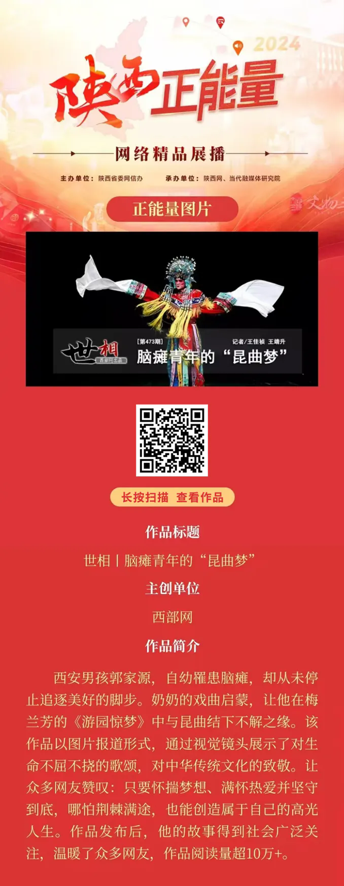 2024陜西正能量網(wǎng)絡(luò)精品展播丨正能量圖片:腦癱青年的“昆曲夢”