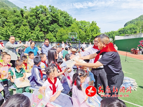 平利縣審計(jì)局聯(lián)合興隆鎮(zhèn)蒙溪街小學(xué)開展“六一”送關(guān)愛活動(dòng),為蒙溪街小學(xué)全體學(xué)生送去夏秋季校服。彭書梅 攝