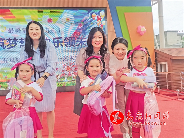 漢濱區(qū)稅務(wù)局為五里鎮(zhèn)幼兒園的小朋友送去書包等文具慰問(wèn)品。陳榮斌 攝