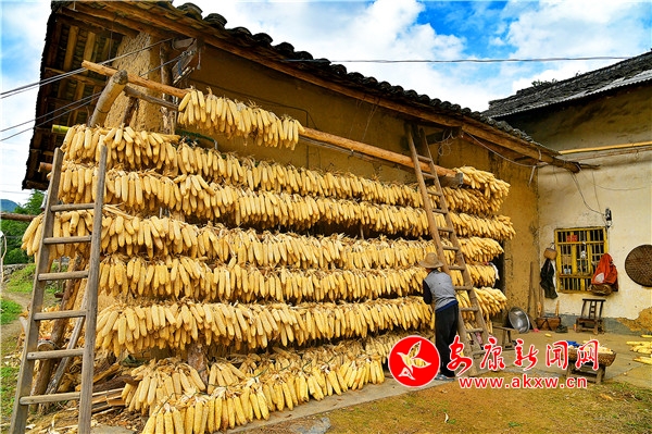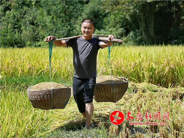 秋日,平利鄉(xiāng)村田園間梯田層層,稻浪滾滾,飽滿(mǎn)的谷穗壓彎了稻桿,放眼望去,遍野鋪金,空氣中也彌漫著淡淡的稻香。在西河鎮(zhèn)女?huà)z山村三里溝原生態(tài)水稻田里,人們按照傳統(tǒng)的習(xí)俗和方式收割水稻,數(shù)十位村民手持鐮刀一字排開(kāi),迅速揮舞著手中的鐮刀,將金黃的稻穗割下并整齊的堆放。打谷人則分為兩組,兩人一組,交叉替換的將手中的稻秧在拌桶里反復(fù)甩打脫粒,拌谷聲“嘭呲嘭呲”有節(jié)奏地作響,聲勢(shì)頗為壯觀。與此同時(shí),廣佛鎮(zhèn)松河村李家坡的農(nóng)家小院已堆滿(mǎn)收回來(lái)的苞谷,郭老漢正在將苞谷殼撕開(kāi),編成串掛在屋檐下的竹竿上晾曬,金黃的苞谷棒子整齊排列,儼然一幅鄉(xiāng)村小院秋實(shí)圖。