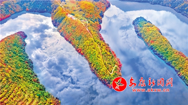 瀛湖是中國獨(dú)特的山水風(fēng)光之湖。秦嶺與巴山夾峙護(hù)佑,造就了如畫的湖,形成了夢幻的景。四時風(fēng)光,不遜西湖,不輸洱海,亦可自比千島湖。瀛湖冬景中蘊(yùn)含著春華與秋色,初冬游覽瀛湖,遠(yuǎn)能看青山不墨千秋畫,近可聽流水無弦萬古琴。山起西北下東南,江自天邊出河谷,形成了地形上的小氣候,冬日里應(yīng)是天寒地凍,但瀛湖一地,冬雨過后,山谷風(fēng)來,云興霞蔚,日影扶疏。看山,群山層林盡染,如調(diào)色板傾覆其上,一坡樹枝隨風(fēng)變,斑斕色彩比花美,游人盛贊“此景只應(yīng)天上有,人間能得幾回見”。觀水,湖面寬闊清凈,風(fēng)起波瀾,水光瀲滟,舟行碧波,人在畫中。晨起湖面輕霧籠罩,是海上瀛洲的景象;正午云光投射湖面,天空之鏡如夢幻般瑰麗;傍晚行至水窮處,坐看云起,就有了迷人的霞光,或金黃或橘紅,給湖面一層層染色,與山林應(yīng)和,便是紅黃翠綠清且淺,萬般顏色不爭春了。