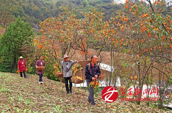 眼下正是柿子成熟的季節(jié),白河縣城關(guān)鎮(zhèn)安福村芍藥花園區(qū)附近漫山遍野的柿子,像一個個橘黃色的小燈籠掛滿枝頭。