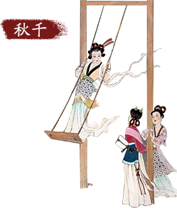 這是中國古代清明節(jié)習(xí)俗。五代王仁!堕_元天寶遺事》載“天寶宮中至寒食節(jié)竟豎秋千,令宮嬪輩戲笑以為宴樂。帝呼為半仙之戲,都中士民因而呼之”,宋代宰相文彥博詩《寒食日過龍門》,詩中描寫為 “橋邊楊柳垂青線,林立秋千掛彩繩。”秋千,意即揪著皮繩而遷移。它的歷史很古老,最早叫千秋,后為了避忌諱,改之為秋千。古時的秋千多用樹椏枝為架,再拴上彩帶做成。后來逐步發(fā)展為用兩根繩索加上踏板的秋千。蕩秋千不僅可以增進(jìn)健康,而且可以培養(yǎng)勇敢精神,至今為人們特別是兒童所喜愛。
