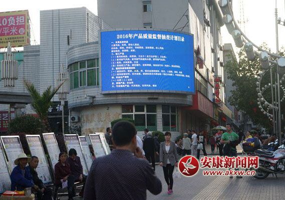 安康新聞網(wǎng)訊(通訊員 董芮)近日,在石泉縣城區(qū)交通樞紐的櫻花廣場電子顯示屏上,可以清晰地看到石泉縣市場監(jiān)督管理局向社會公示的2016年重點產(chǎn)品質(zhì)量抽查計劃……