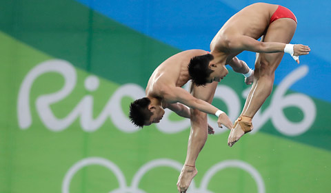 當(dāng)?shù)貢r間8月8日,在里約奧運(yùn)會男子雙人十米臺決賽中,中國組合林躍/陳艾森一路領(lǐng)先,以巨大優(yōu)勢奪冠,中國隊(duì)也實(shí)現(xiàn)該項(xiàng)目四連冠。中新網(wǎng)記者 杜洋 攝……