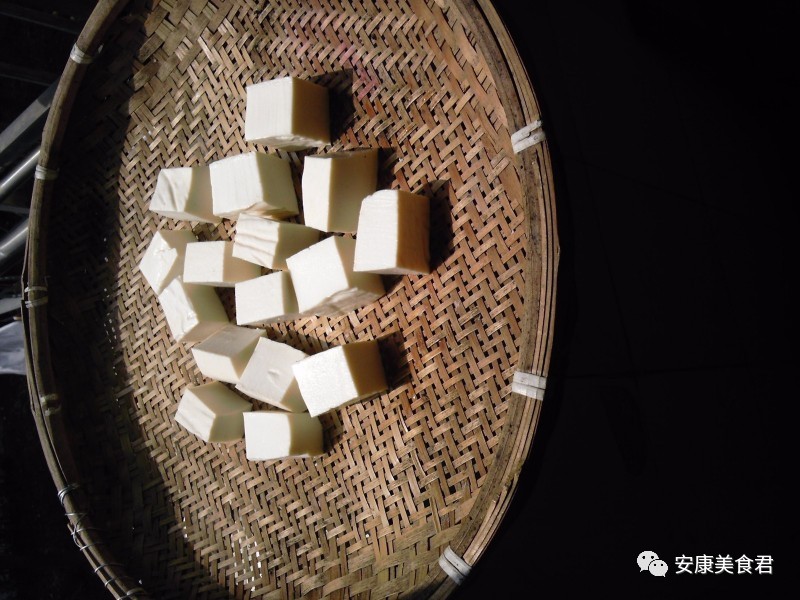 豆腐切塊,要切厚,上鍋干蒸,3至5分鐘,蒸的時(shí)間越長(zhǎng),豆腐里的水分越少,做出來(lái)的豆腐乳越硬,然后取出來(lái)晾著。