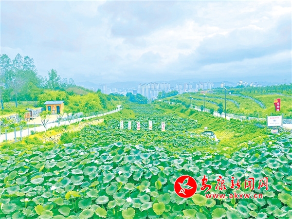 “十五的月亮升上了天空喲……”一位綠裙少女唱起了《敖包相會》,大家手拉手,圍在湖邊,跟著唱跳,光影被打散,水中的月亮也跟著一起搖擺。
