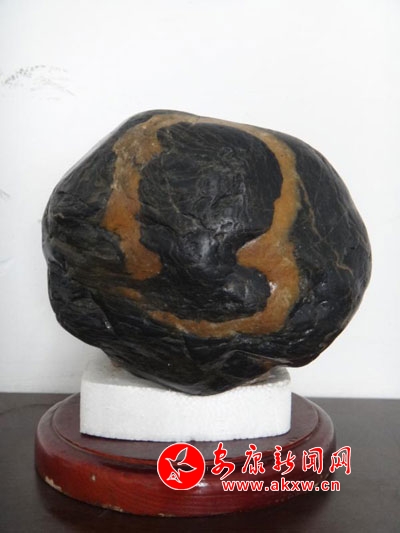 此石為漢江水墨石,亦稱金帶石,石長22㎝、寬20㎝、高16㎝.石形完整,色彩對比明顯,頭像輪廓比例協(xié)調(diào),人物五官清晰可見,面部表情呈沉思狀,尤以“魯迅”先生標志性小寸發(fā)和八字胡最為傳神,令人嘆為觀止!