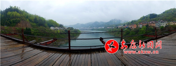 煙火氣的升騰,使得山峰尖銳的棱角變得蔥蘢而又柔軟,在群山之巔,織出一條毛絨絨的綠色弧線。河流上晃悠的索橋,吱吱呀呀,將春日特有的黏膩鉆入每一寸繩索的肌理,應(yīng)和著路人行走的步調(diào),哼出一曲“雨打芭蕉,紅了櫻桃”。